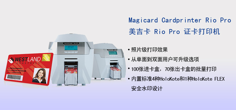选项: 双面升级模块:用户可将单面的Rio Pro升级为自动双面的Rio Pro Duo 定制HoloKote水印包:包含一可安装数据的CD光盘和插在您打印机上的一定制HoloKote卡 编码选项:磁条卡编码,智能卡编码(Mifare,Desfire,iClass,接触芯片和组合编码)等
