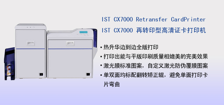CX7000制卡机采用全球最先进的再转印证卡制作技术,可以到达真正照片级制作效果,同时完美的实现高清晰边到边打印。