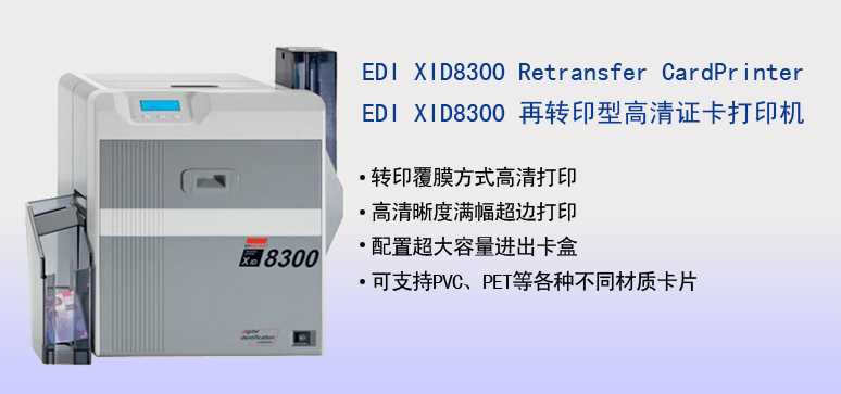 EDIsecure® XID 8300 单双面再转印打印机是以工业级的标准设计的,因此它支持卡片弯曲矫正模块,翻转模块,编码模块等多种可选模块的集成。基于稳定性极高,且久经考验的XID再转印技术,这款打印机还可以使用即插即用的联机编码和联机覆膜模块。它体积小巧,却集合了高可靠性、高性能及低成本于一身,可轻松打印出十分耐用的防伪卡片。即使是在智能卡的不平整卡面上,也可以打印出能与平版印刷质量相媲美的完美效果。 这款打印机可以满足您的独特需求,并可根据客户的需要随时加装模块。
