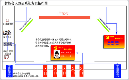 通过与会人员佩戴的无线射频RFID卡,实现对参会人员的身份识别功能。