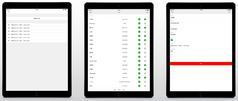 现场即时签到支持多台iPad联机同步进行多地签到。所有签到结果会实时同步到管理后台数据库中,方便主办方随时查看和统计到场数据。