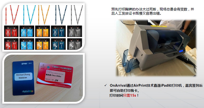 应用现场即时签到自助签到站,每嘉宾的通过时间仅需30秒(含来宾证卡打印)!