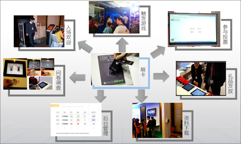 通过现场即时签到即时打印的入场证卡还可以植入RFID芯片,用于会议现场的身份验证和数据实时采集,例如分会场入场、餐饮住宿、礼品发放、集合点名、信息录入、调查投票或者认捐缴款等环节的嘉宾身份校验。